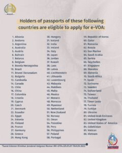 Holders of passports of the following countries are eligible to apply for e-VOA: